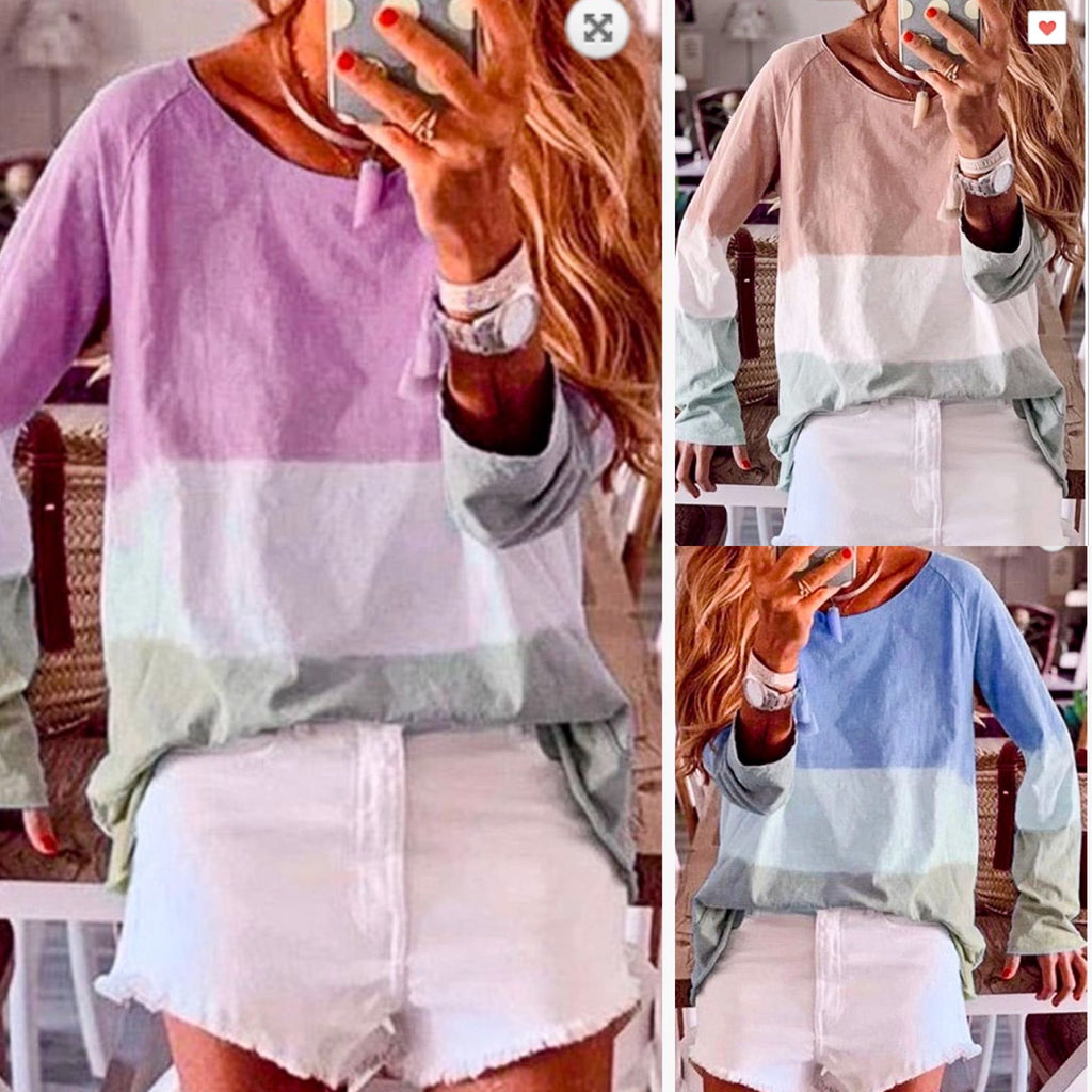 ffitting casual tops all year long! This one is soo darling with its multiLoose multi-color dip-dyed casual tops! I mean you can put this on and look so casual cool chic and ready for anything