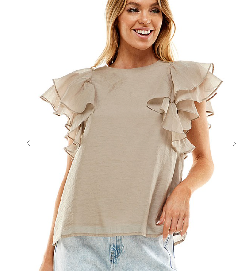 With a easy fit body, and soft flowy ruffles it is seriously one of the best. You can dress up or dress down. The colors are so soft and pretty for Spring!
