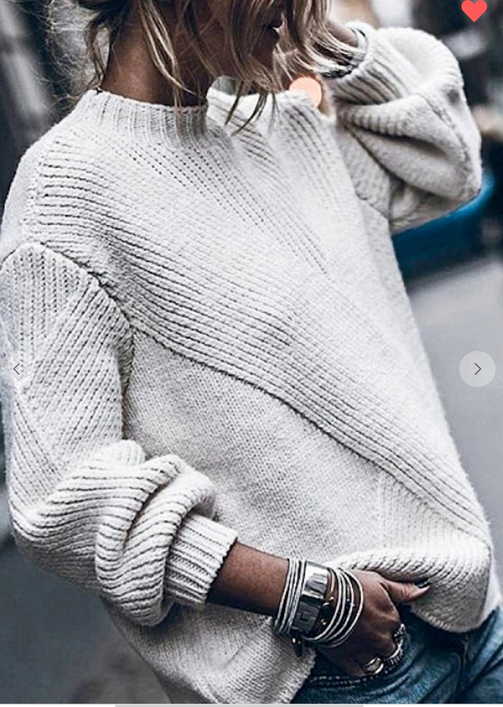 What we love about this one! The Puff sleeve ribbed detail, its knitted loose fit and just how super cute is!