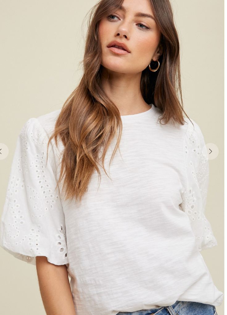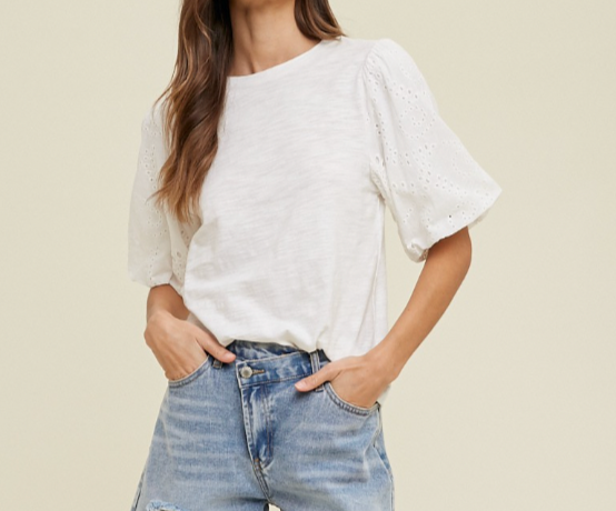 Pair with this darling cotton eyelet sleeve top!! Love the great fit, cute sleeve and easy to wear with absolutely everything!!!