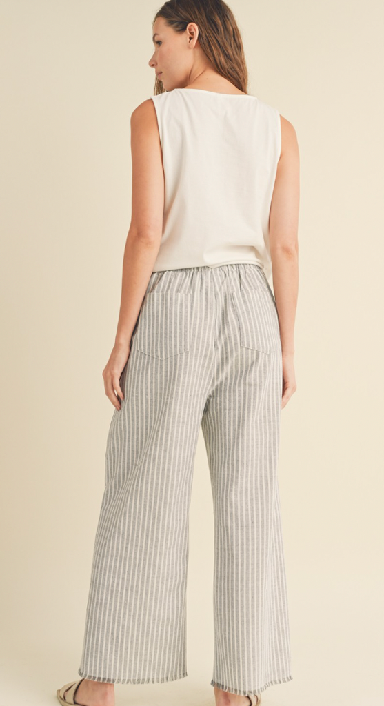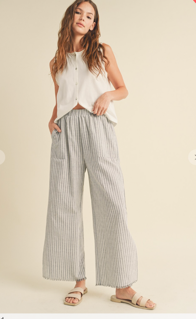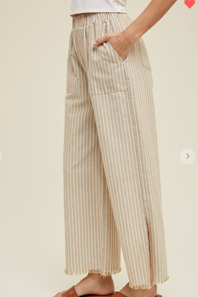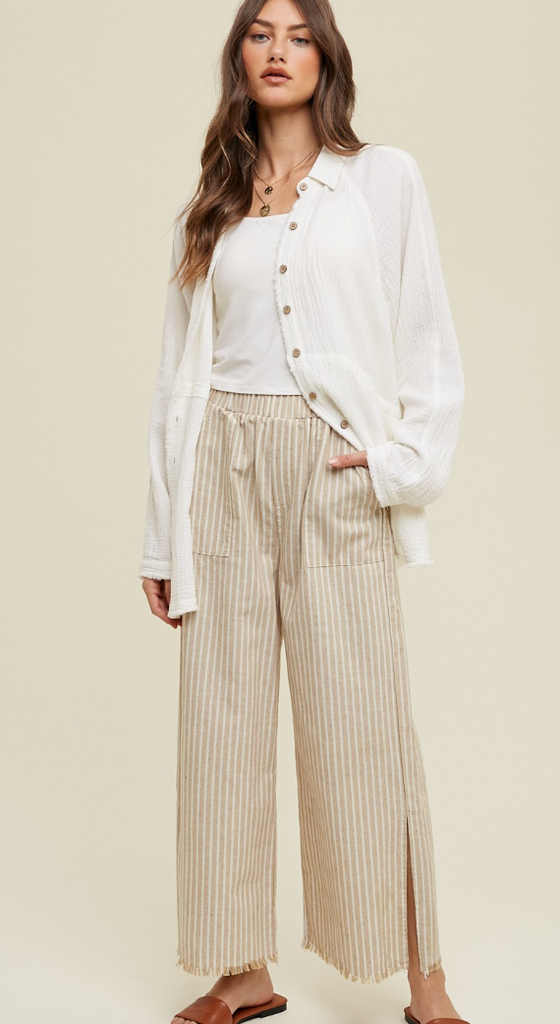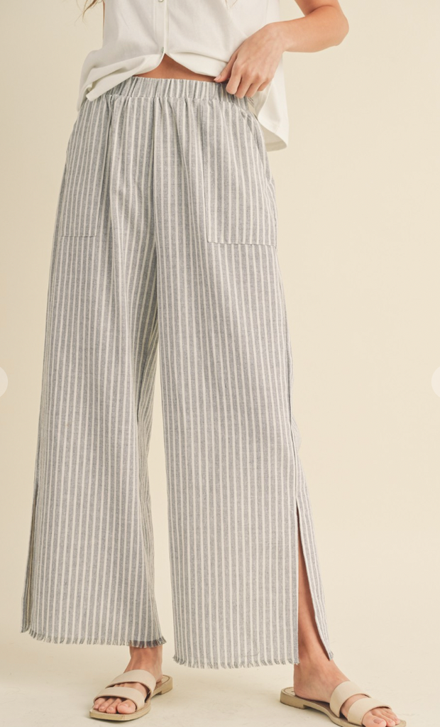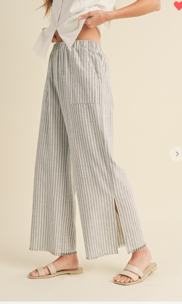 The New on Trend Pant! This is an easy breezy pull on with elastic and pockets! Love the wide wide leg and slit on the side! So easy and comfy to wear!