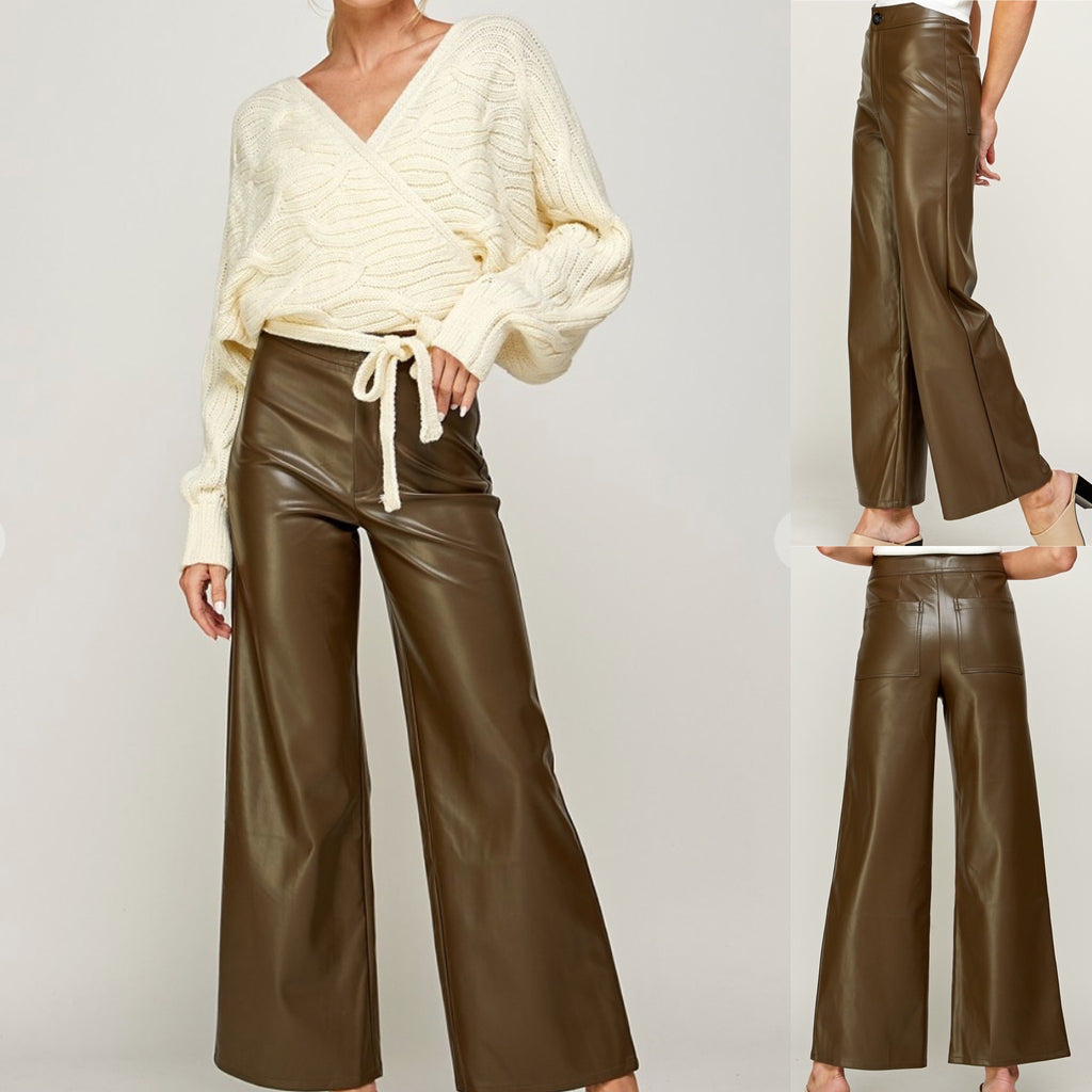 This Vegan Leather is so soft and gorgeous! Front button and zip, and ankle length! This is not a pant to miss! LOVE LOVE LOVE!!!