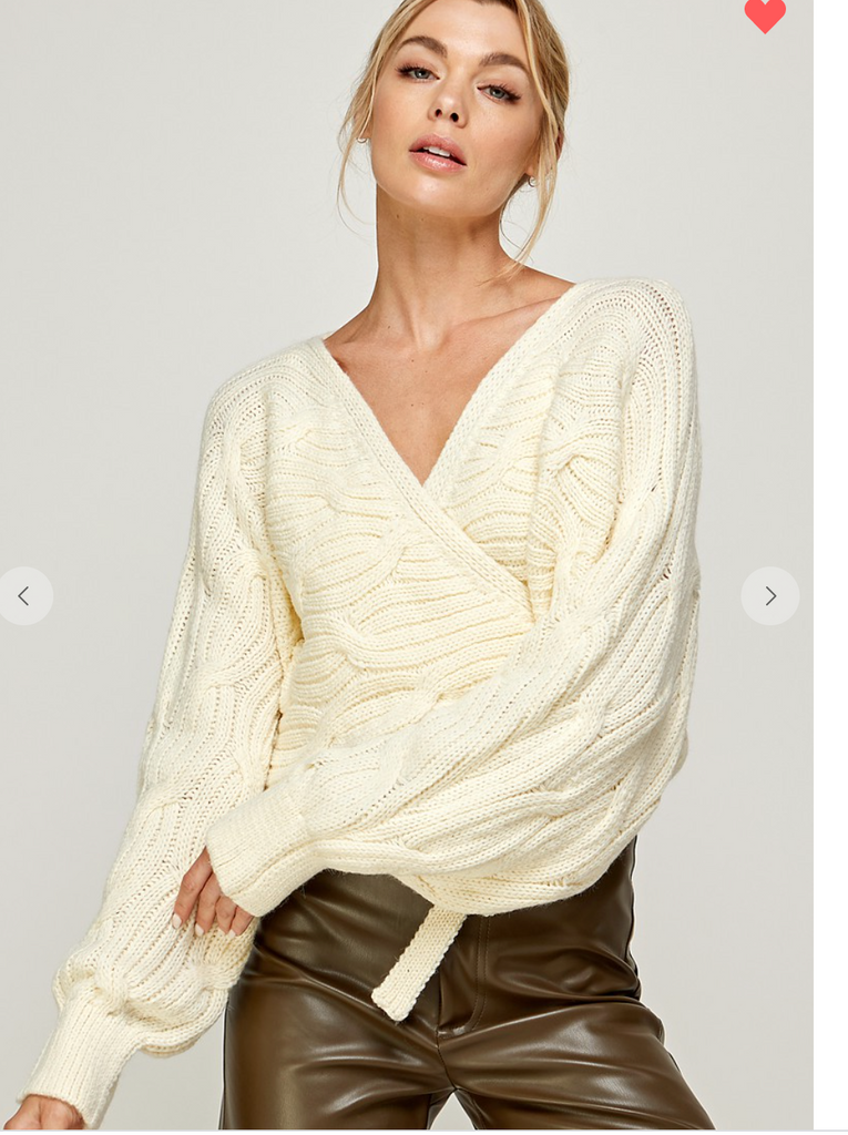 Pair with the darling wrap style sweater! Love the detail in the fabric and how it is a bit shorter length which  pairs well with the higher waist pant! You can even throw a tank under it for such a classic look!