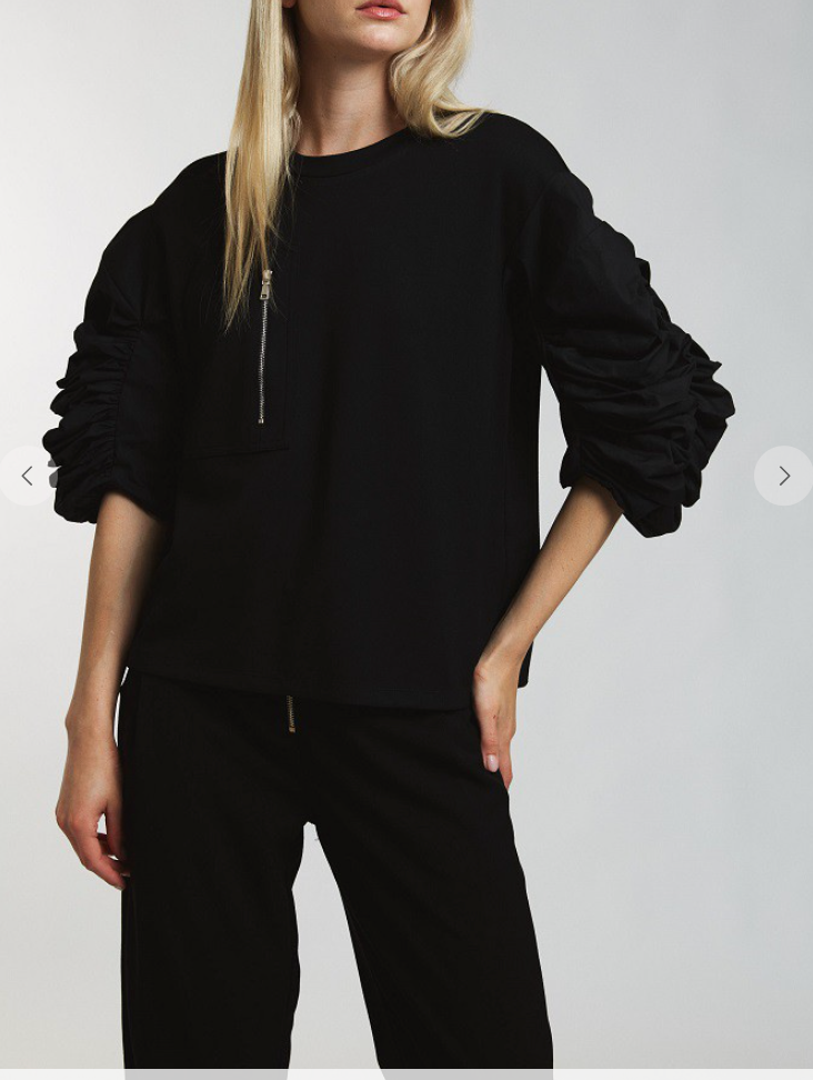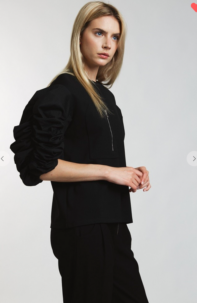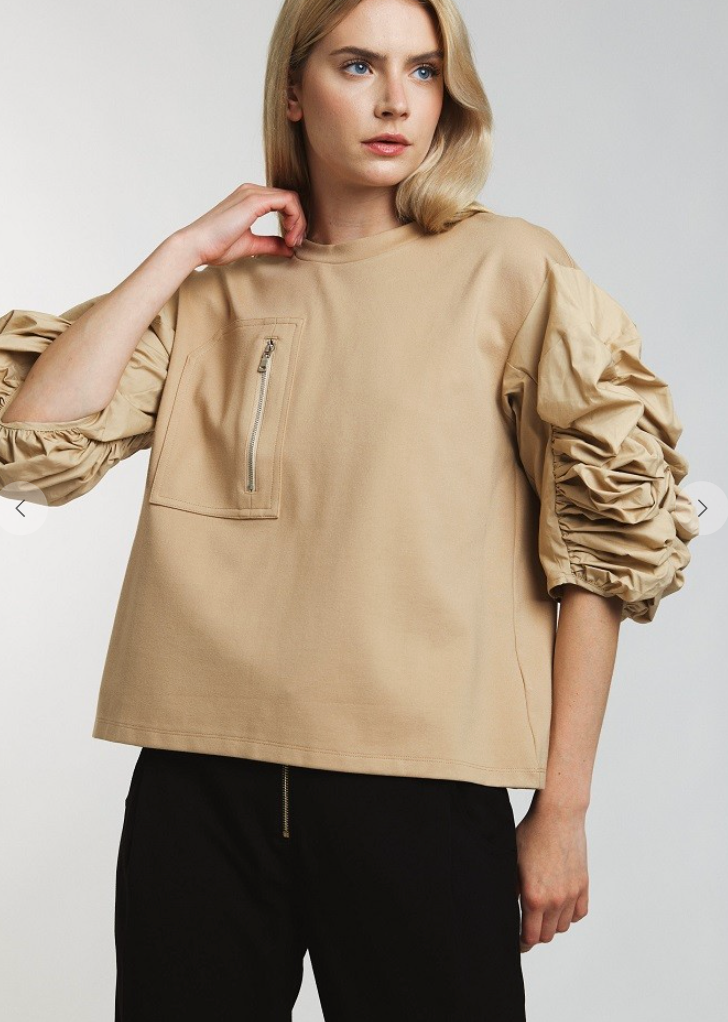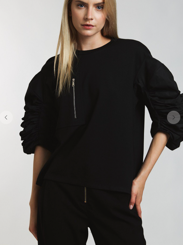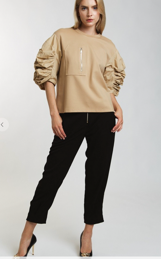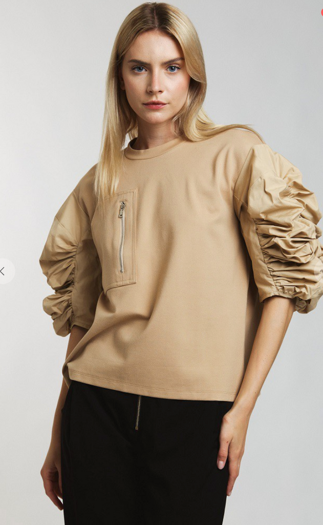 3/4 Puff Sleeve Top with a front zipper pocket is to die for! This looks so chic