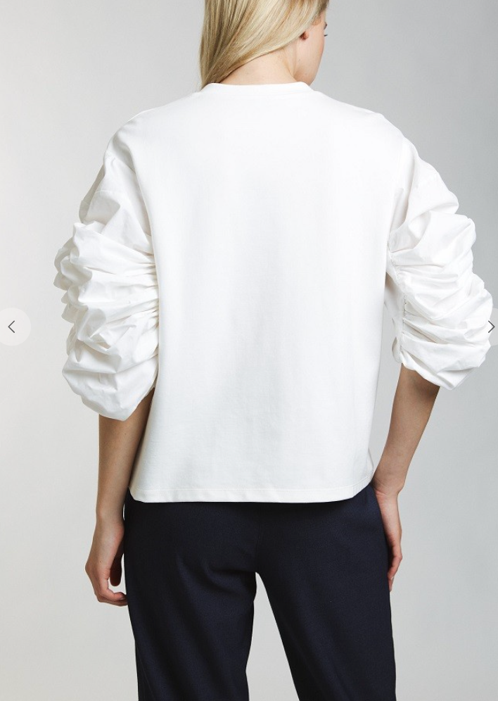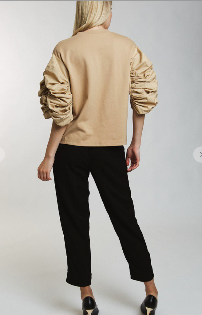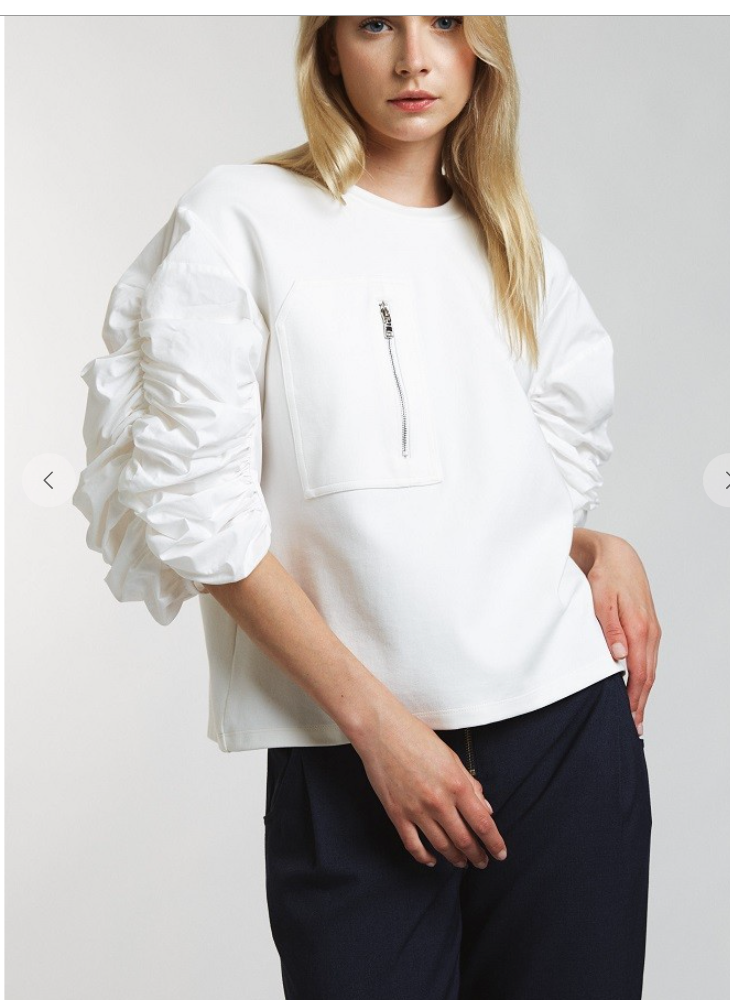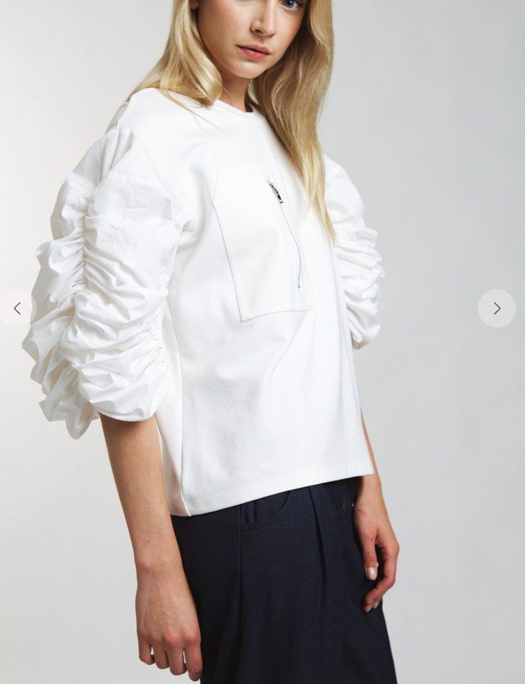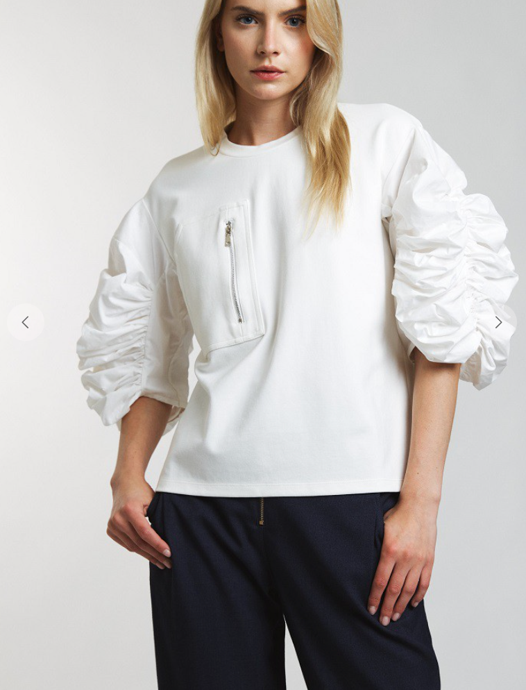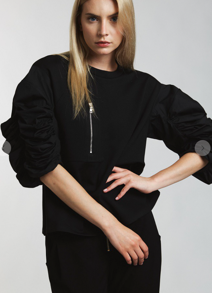 3/4 Puff Sleeve Top with a front zipper pocket is to die for! This looks so chic