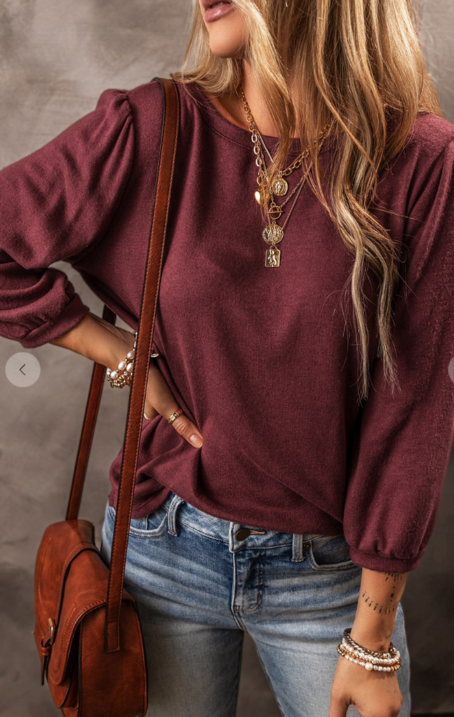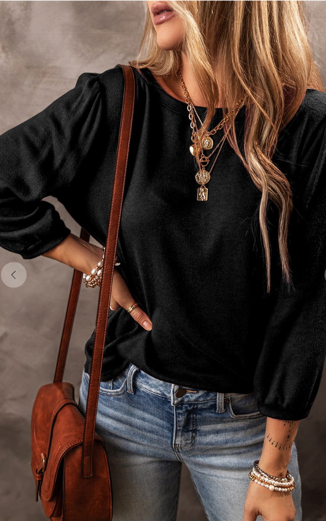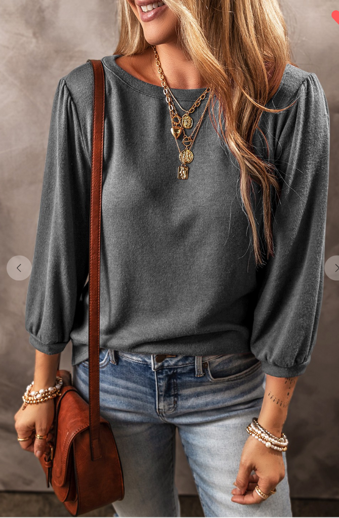 We love the Bracelet sleeves, crew neckline and ruched detailing!