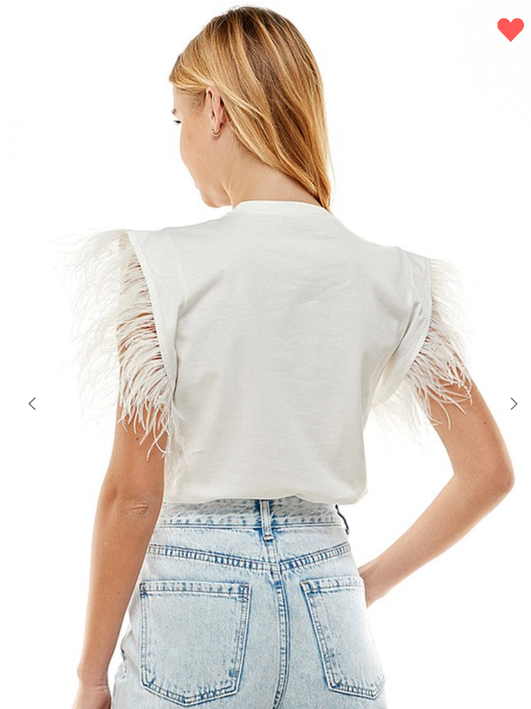 Our Feather tee is a huge seller this year! 100% cotton, super comfy and soo cute! Such a statement piece without even trying! This one can be dressed up or dressed down!