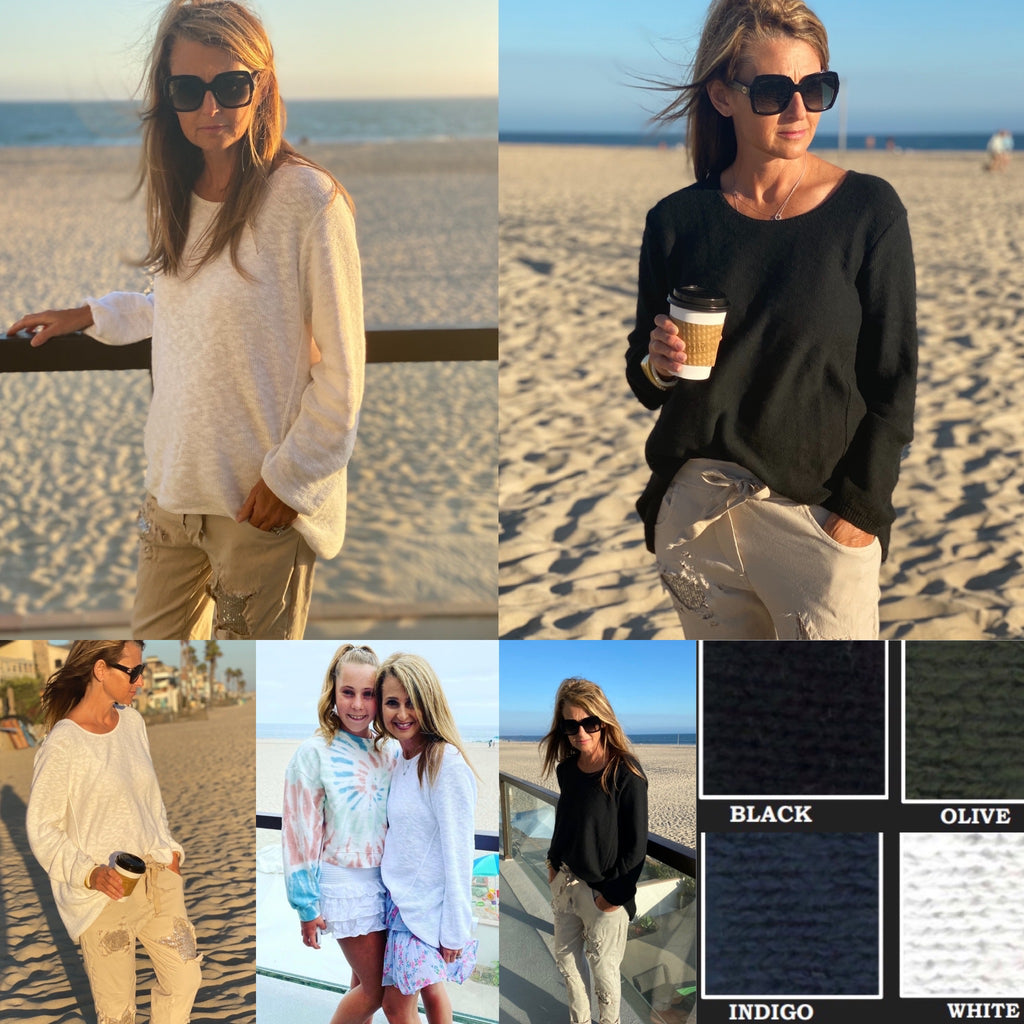 The last few years we have sold our Sweater Tees like crazy! We knew this year we needed a new one but we wanted to update it and re invent it! Well we FOUND it! I was shopping in Laguna Beach and came across this line and bought one in all colors! I have worn it almost every day!