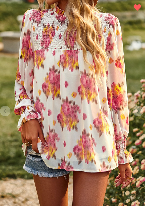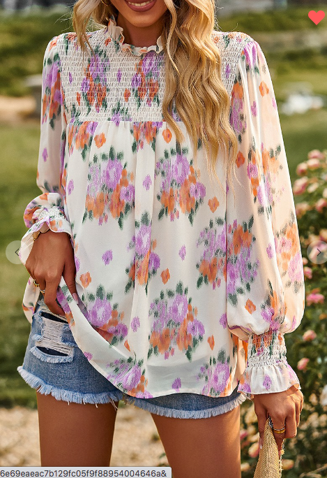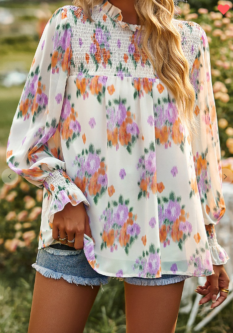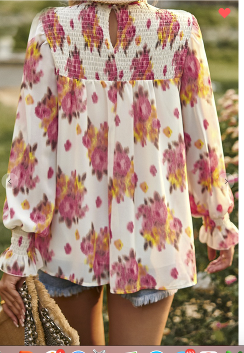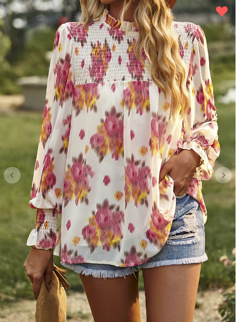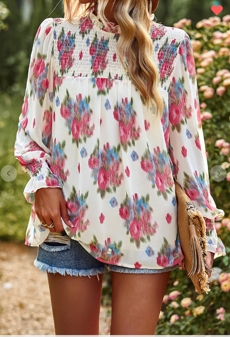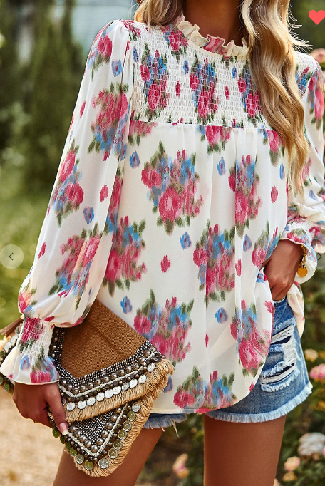 This smocked Floral Chiffon Ruffle Blouse the material is soft and comfy.