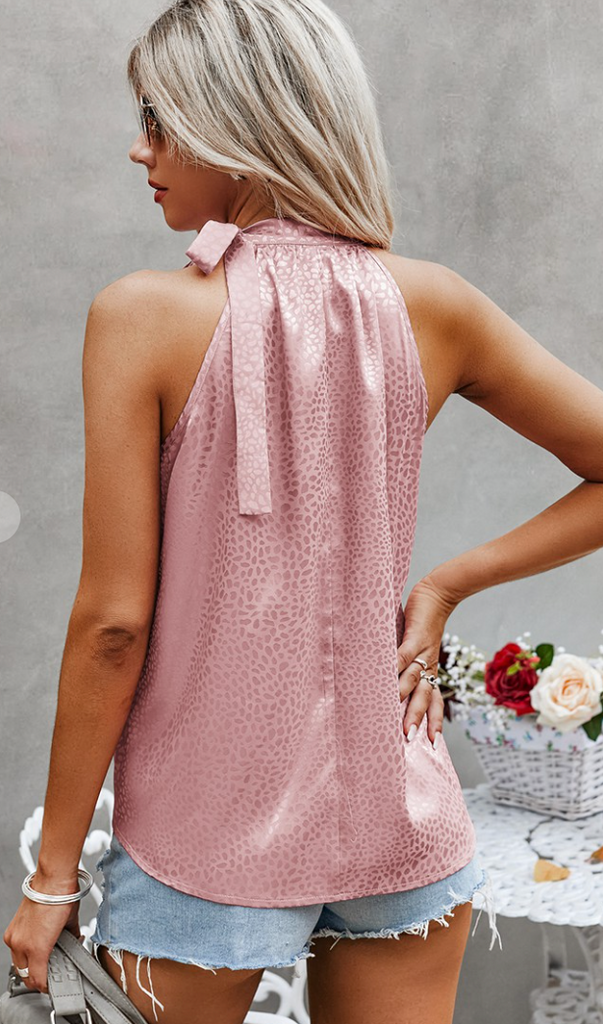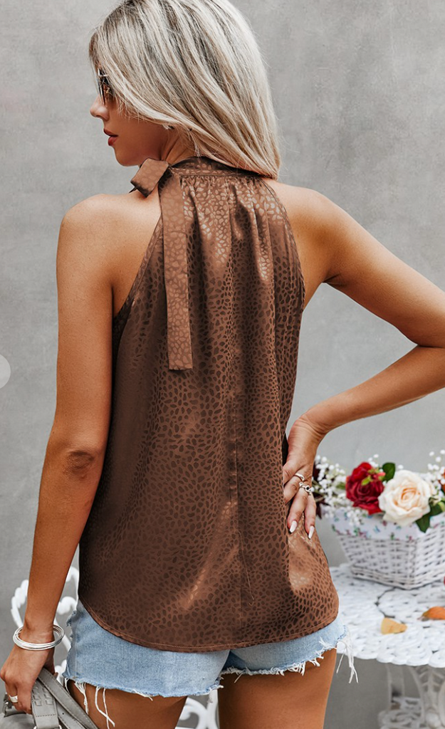 This tonal print halter is the BEST. You can dress it up or down! Pair with denim shorts running around town or cute denim pants for a night out!
