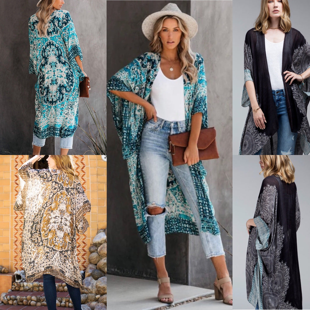 I LOVE this look and wore Kimonos so much last Spring and Summer. From layering over your favorite jeans or shorts, to adding a pop of color to date night, or to using as a swimsuit coverup or at your favorite beach vacation, this travels and wears so well! These are open front, and kimono sleeves add sophistication to the effortless design. Soft and lightweight, this relaxed fit will be your go to when you just need a finishing touch!