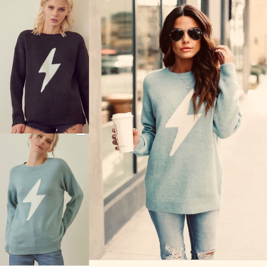 Our Love Strikes Again Sweater is on TREND! We loved the striking white lightning bolt that flashes across the front of this darling sweater. This soft and warm knit fits relaxed and has a cozy wide neckline and long sleeves with fashionable ribbed edges!