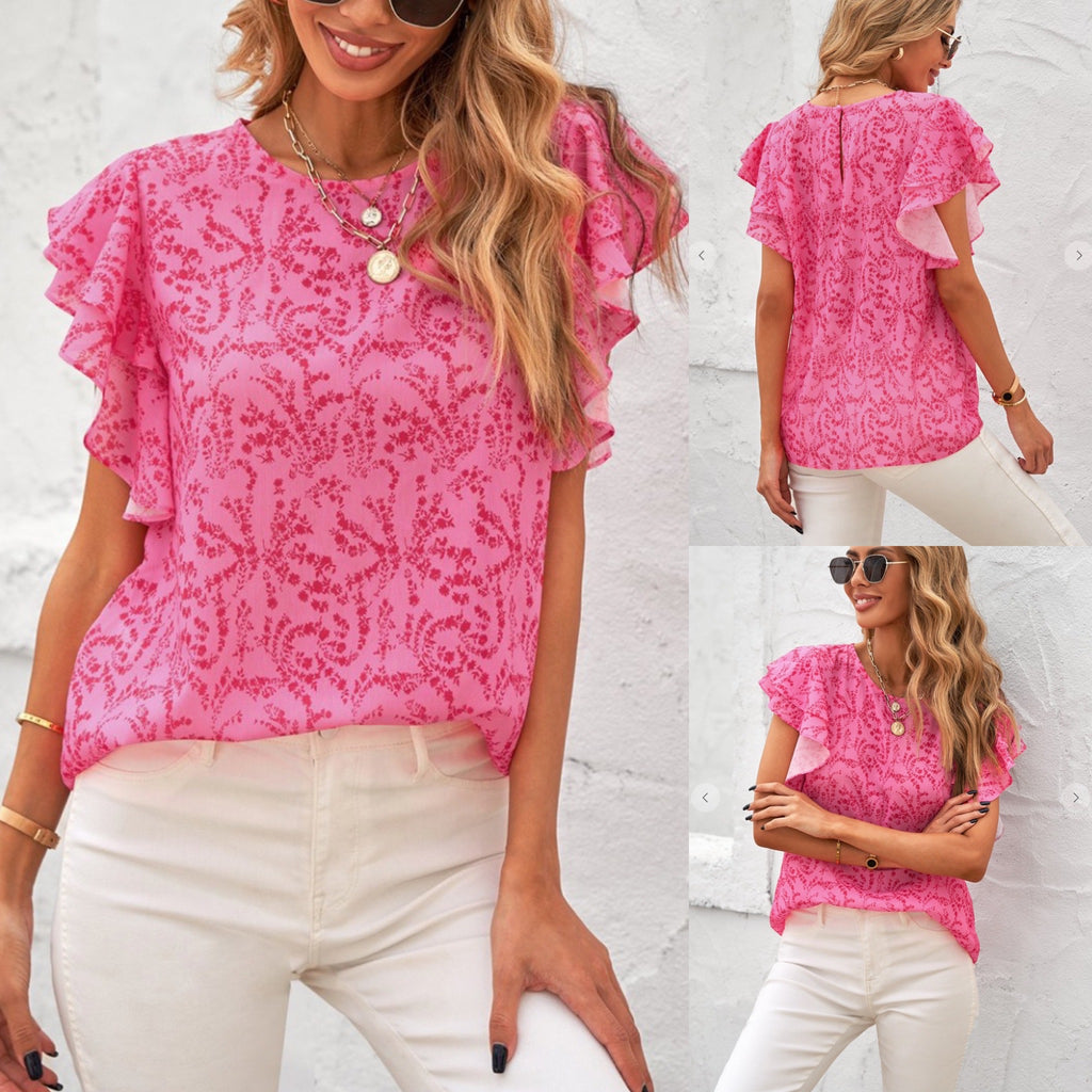 This double ruffle tee is the CUTEST! Like a lightweight chiffon kind of fabric that is so cute! Makes a statement without even trying! poly