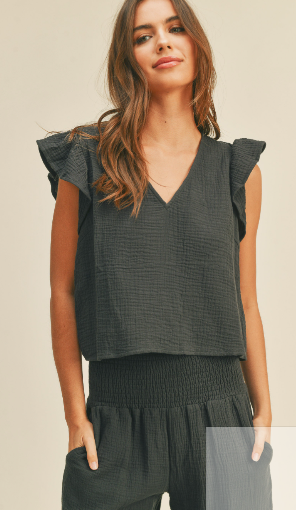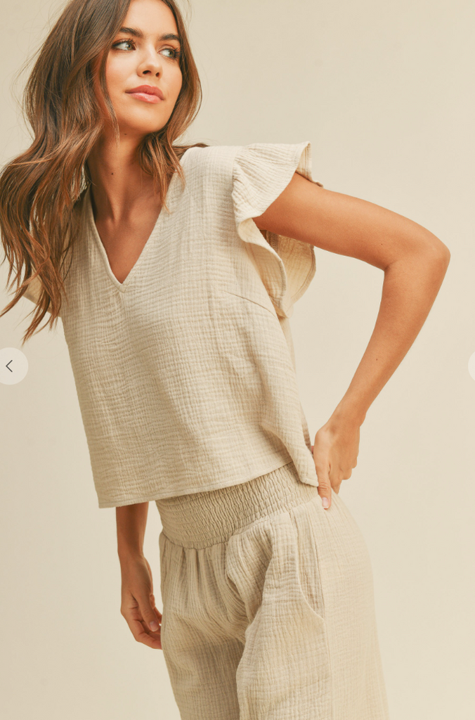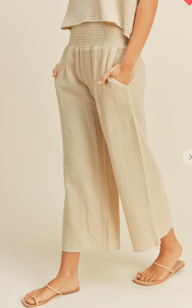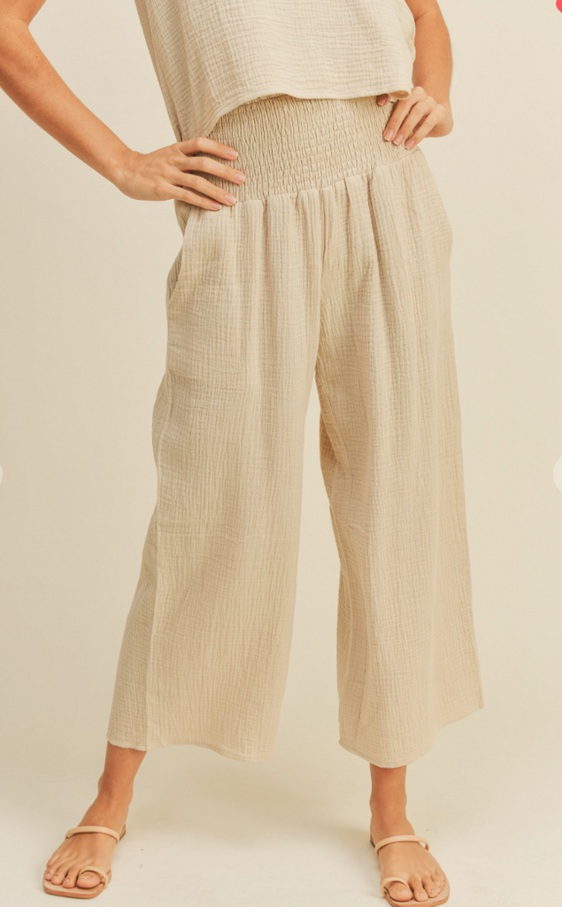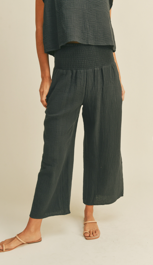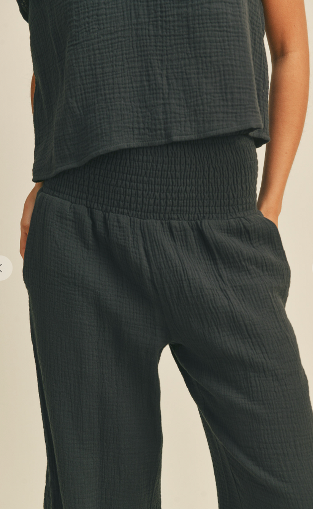 This 100% Cotton Gauze fabric is amazing! Wear this adorable pants with the cute top, a tee or a Spring Sweater! The top is adorable and can looks so cute with the pants or even with shorts!