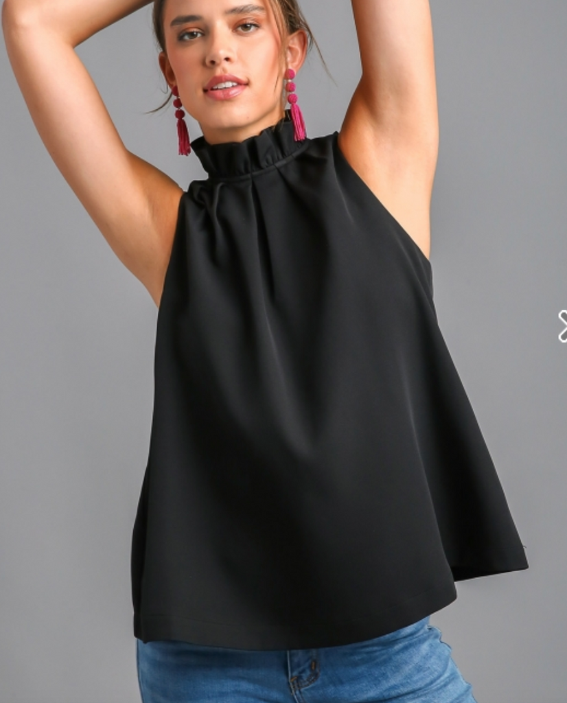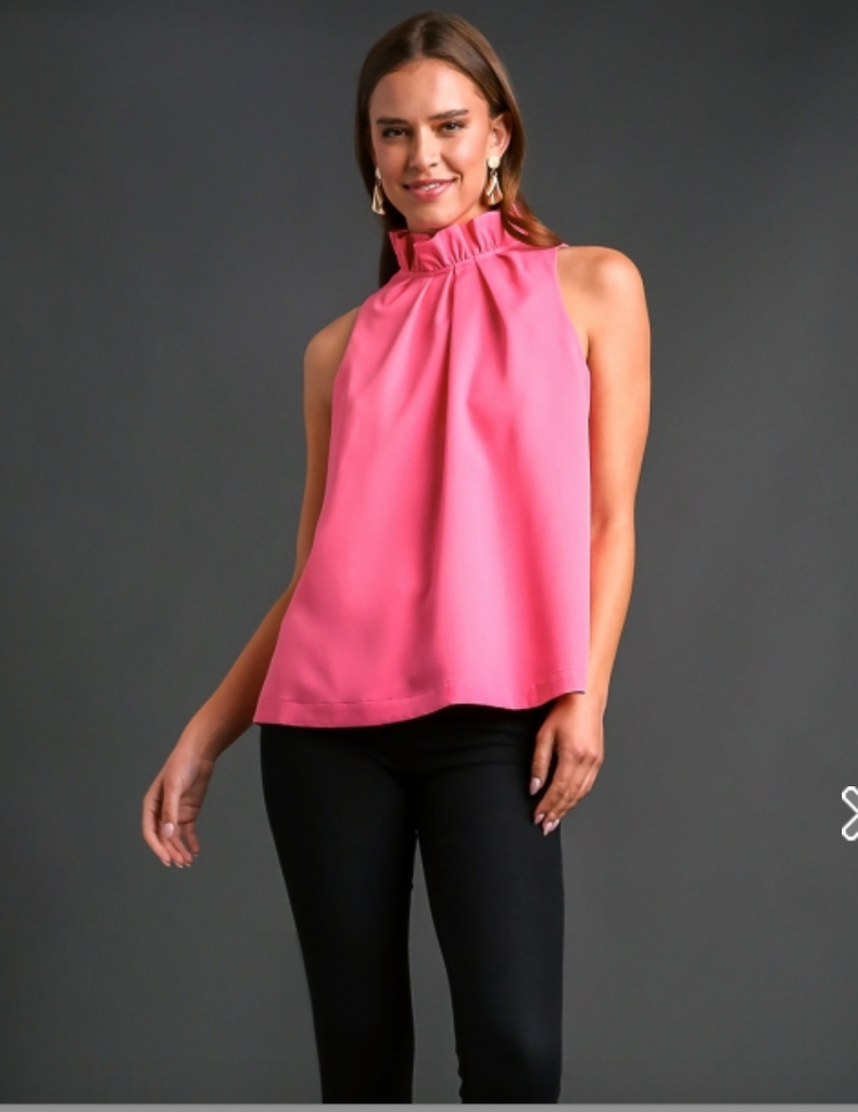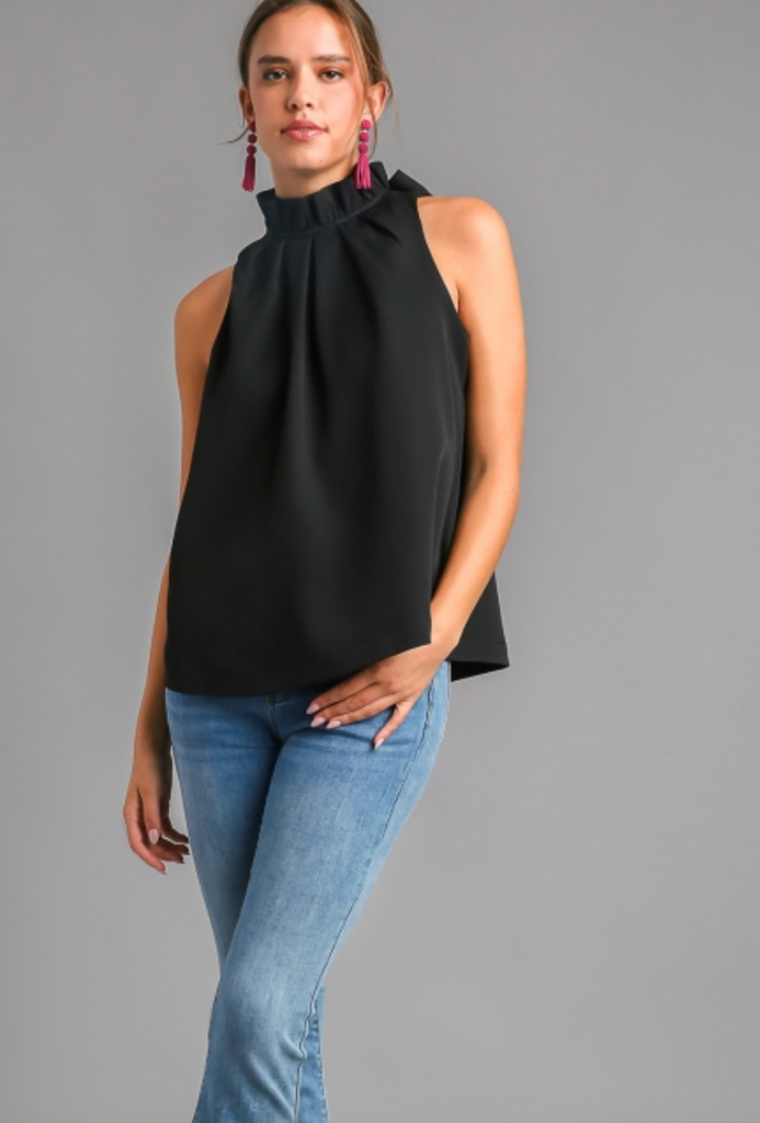 DYING over our NEW Sleeveless Top with Ruffle Neck, Pleats & Back Bow Tie! I MEAN so cute for all your travels and events this Summer. Such a cute and easy top! Fits all!