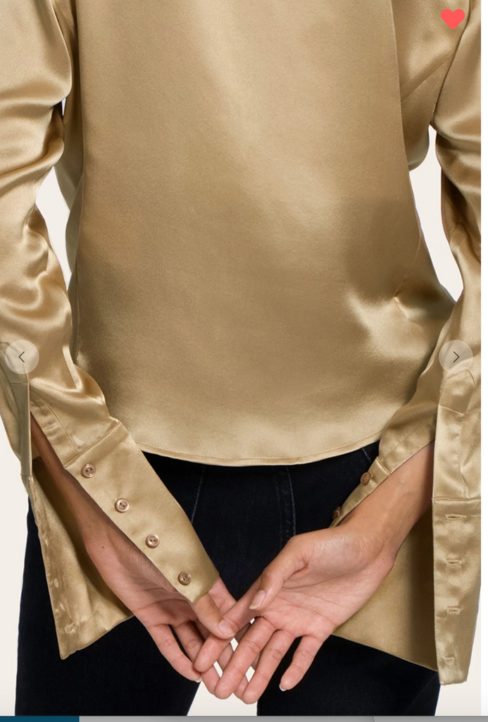 The Wide V neck that can be buttoned up or left undone, love love love the buttoned cuffs and gorgeous gorgeous color! And love the satin fabric!