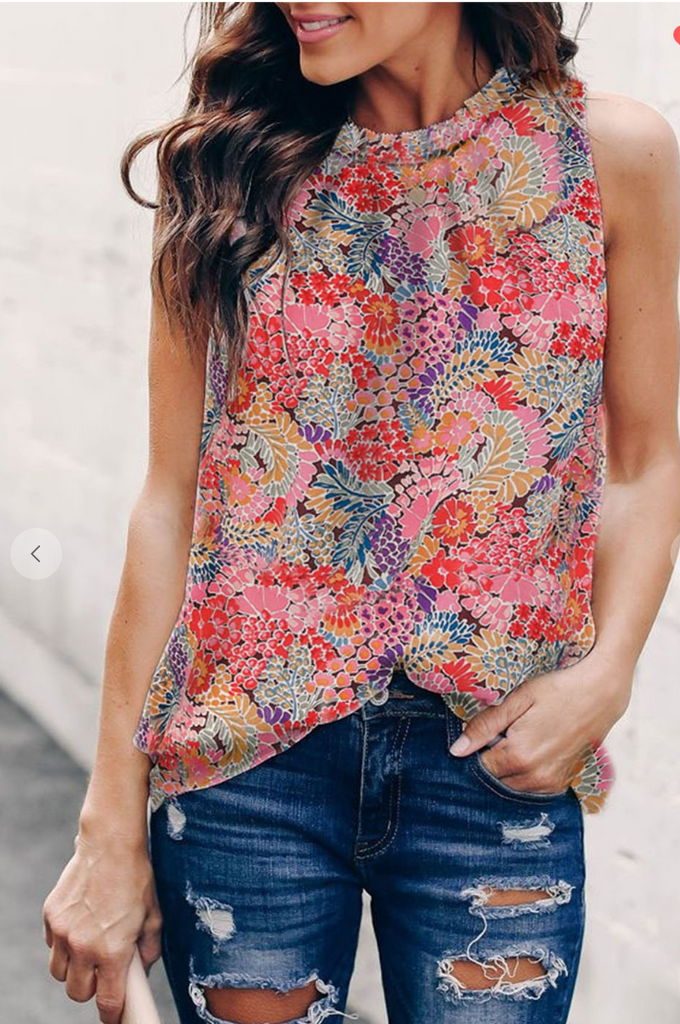 Grab our cutie for all those Spring Days coming up! LOVE the  high Neck, gorgeous print and colors, and easy to wear top that will make this top a standout all Spring long!