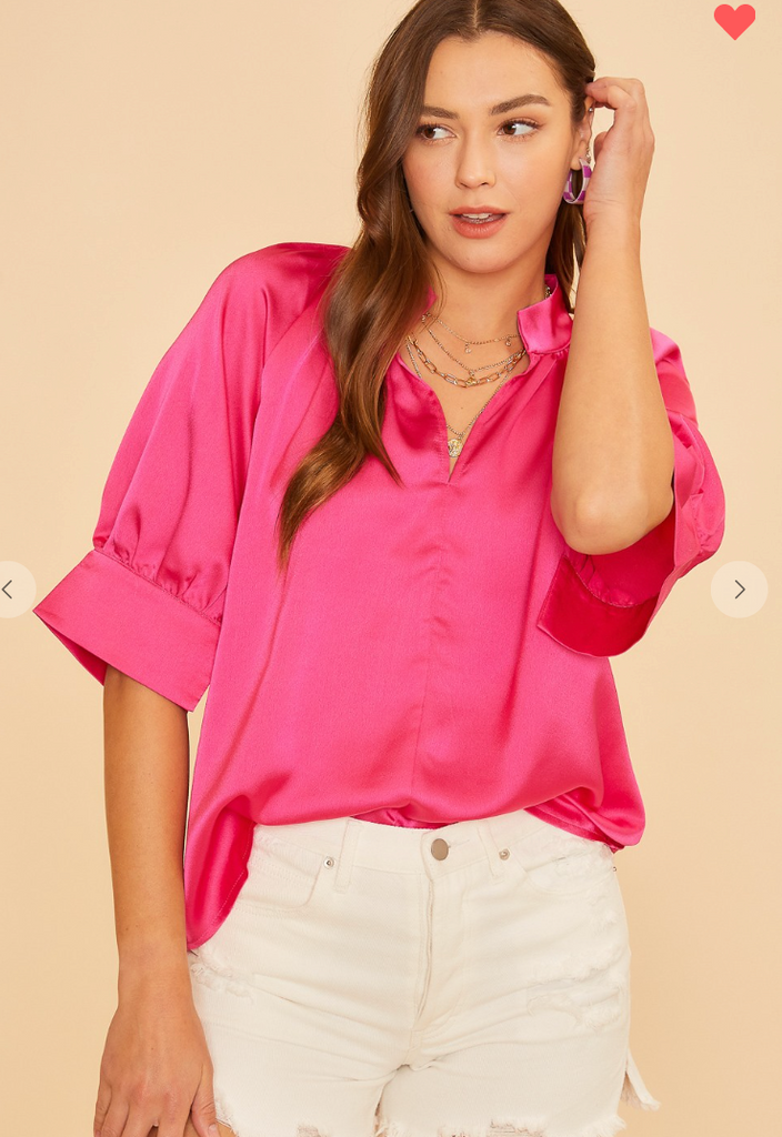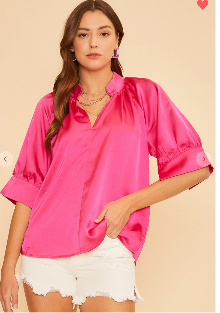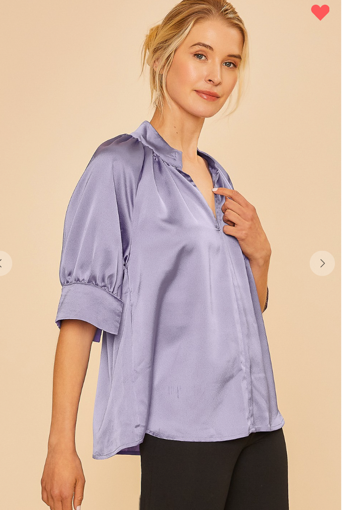 We loved the sophisticated body of this one! The V Neck blouse with collar and great 3/4 sleeves! Love the loose fit band as well! This one has a great fit. Slightly generous where you can tuck in or leave out! The options are endless. Great colors too!