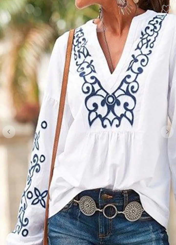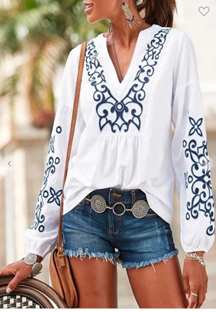 Spring Essentials: Tribal Embroidery Long Sleeve V Neck Top!