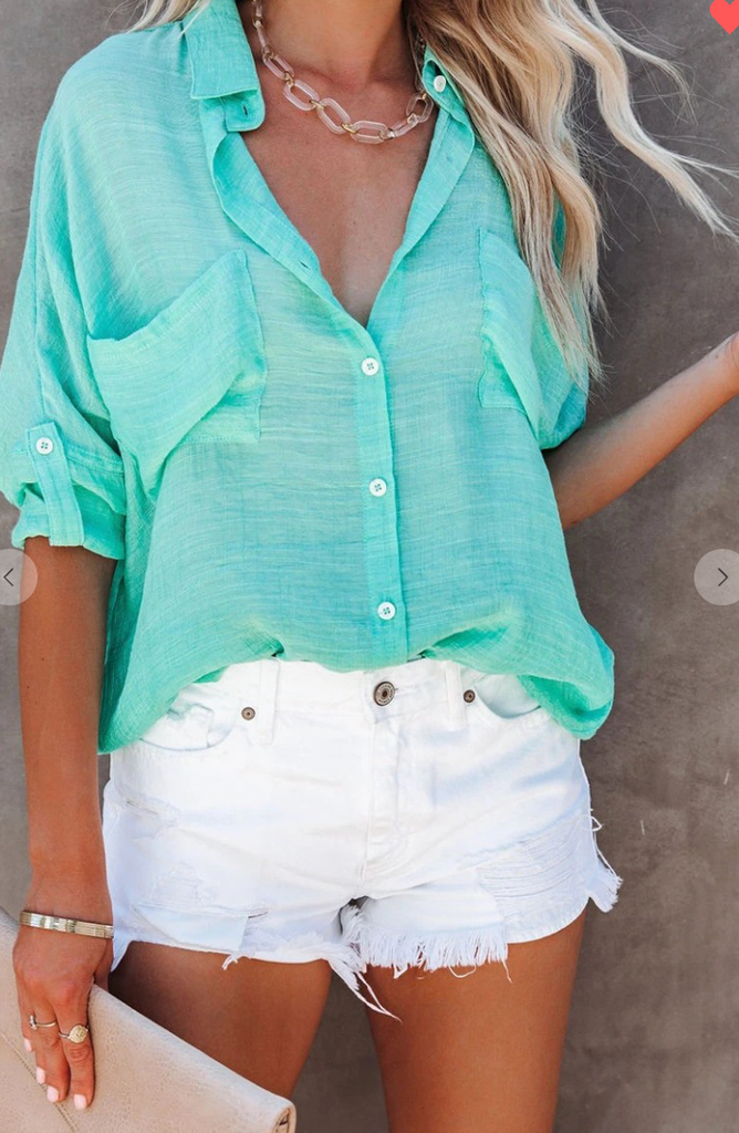 These easy breezy blouses are the best for any casual day! With a great texture and easy to wear to style you can throw them on with shorts, jeans, a swimsuit or a skirt!
