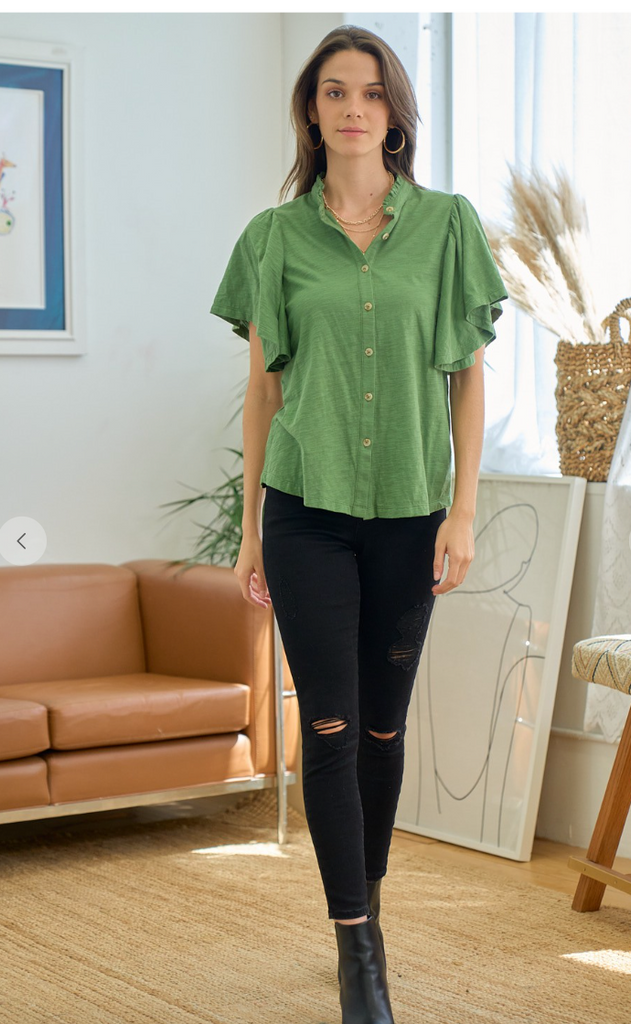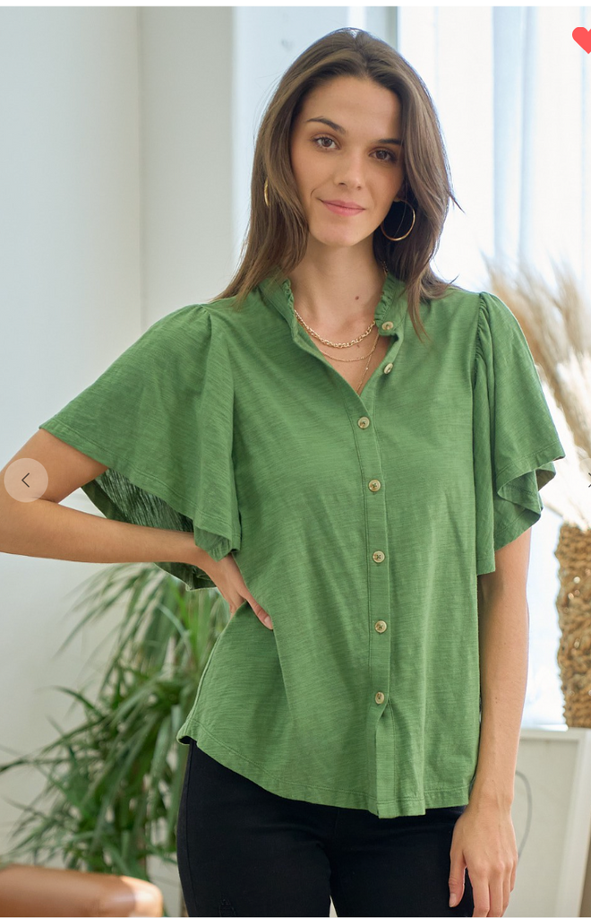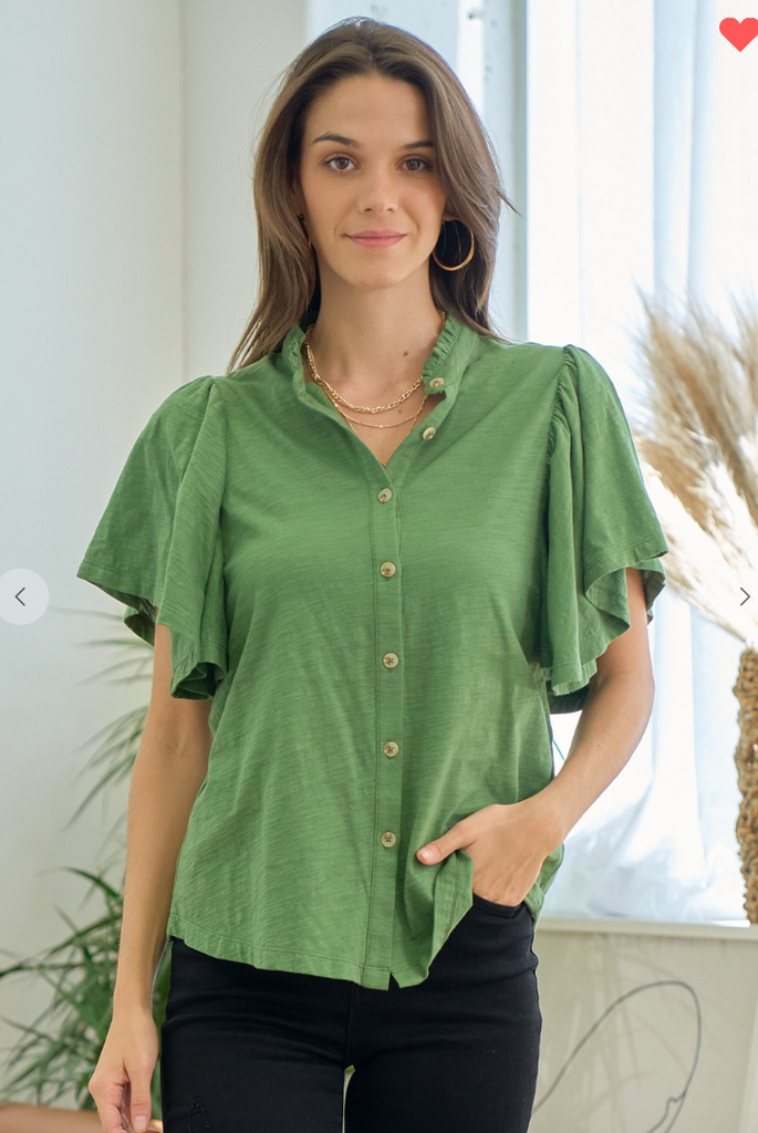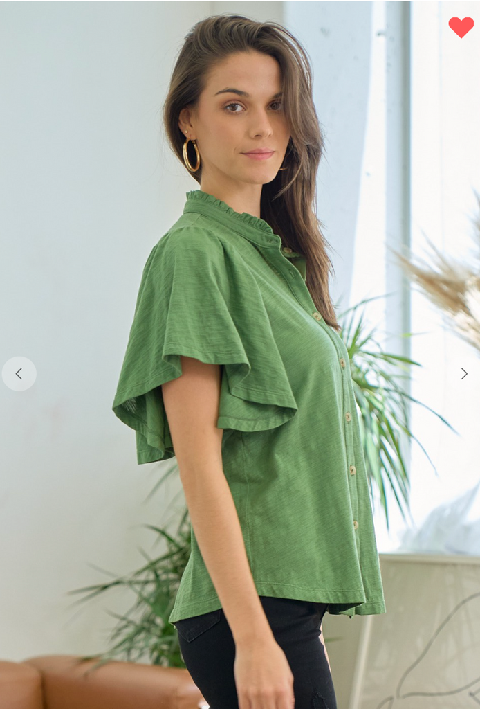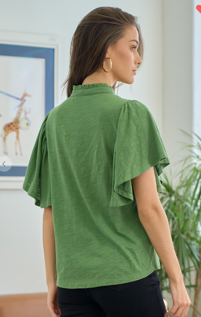 TTeh cute slight ruffle V neck , the flutter sleeves that are cool and comfy and the great fit!
