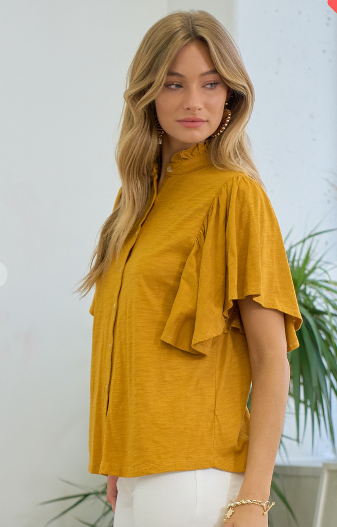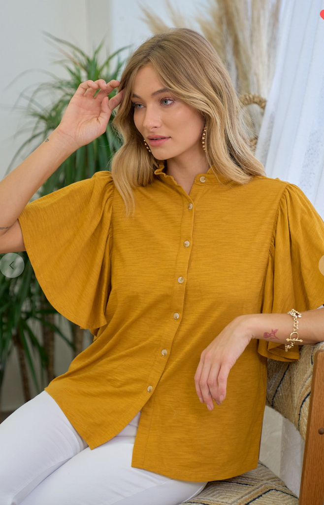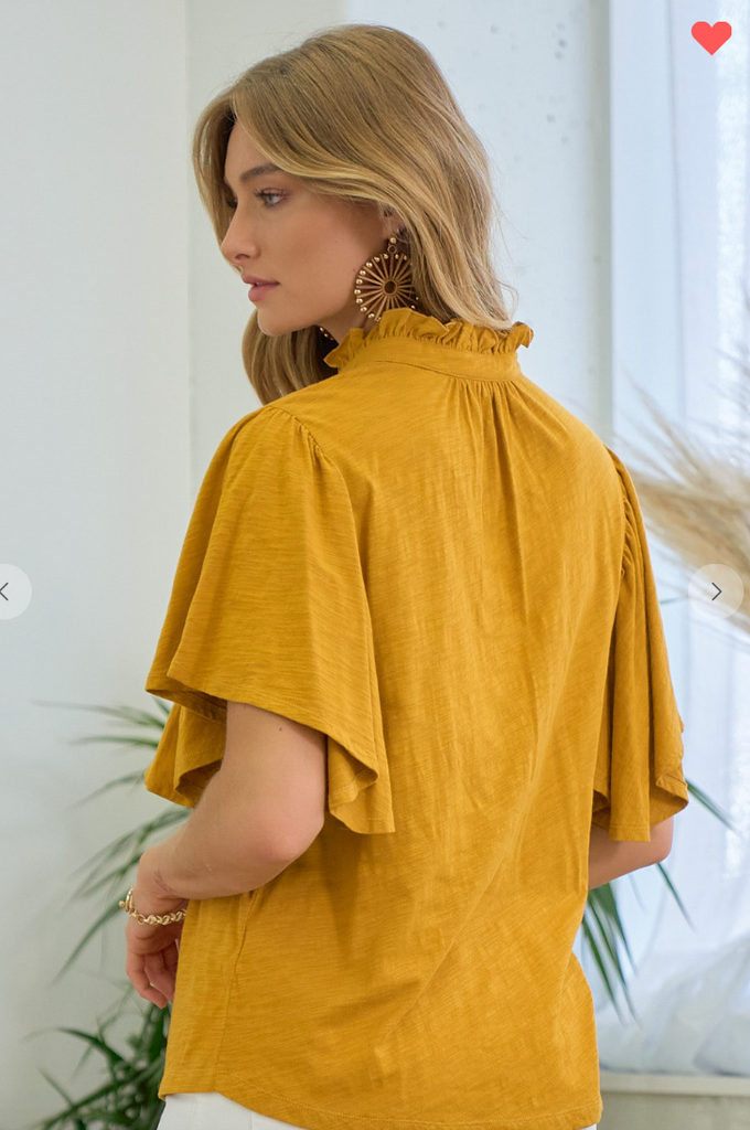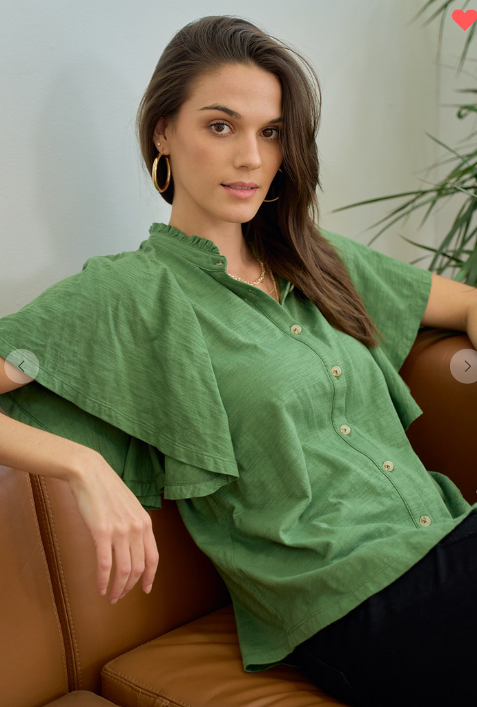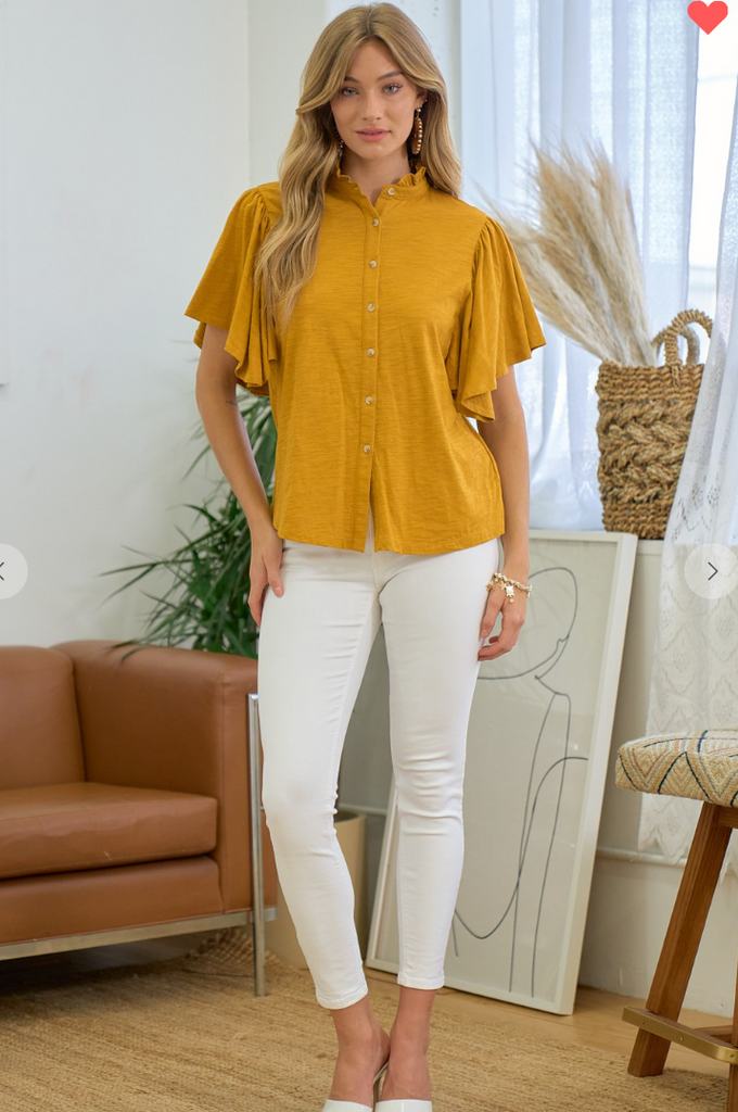 TTeh cute slight ruffle V neck , the flutter sleeves that are cool and comfy and the great fit!