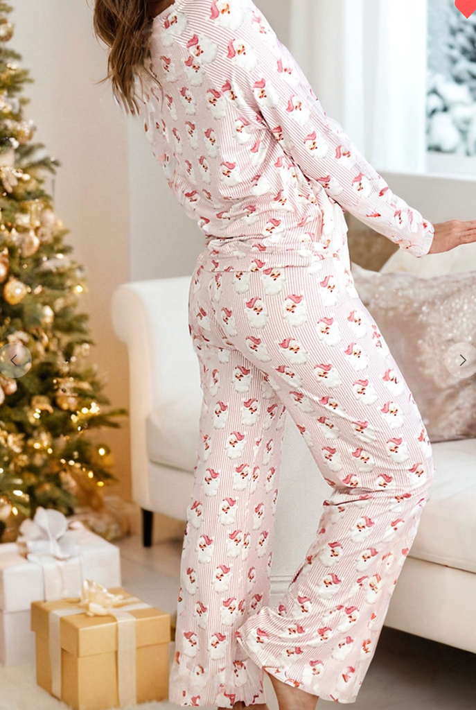Claus Striped Print Loose Fit Two Piece Lounge Set