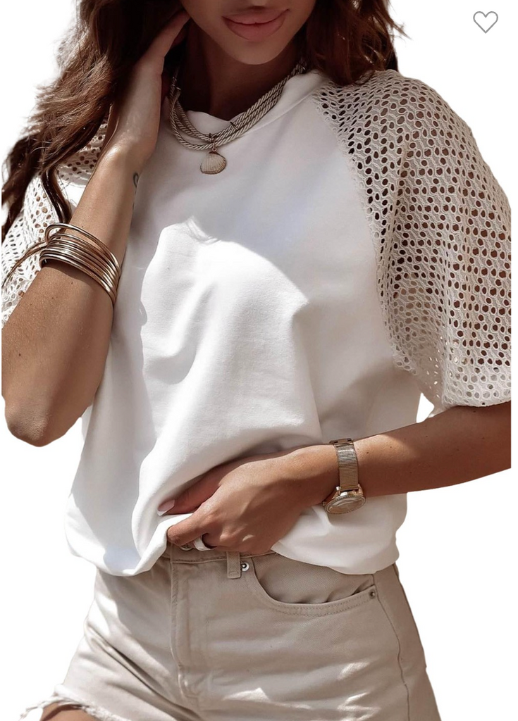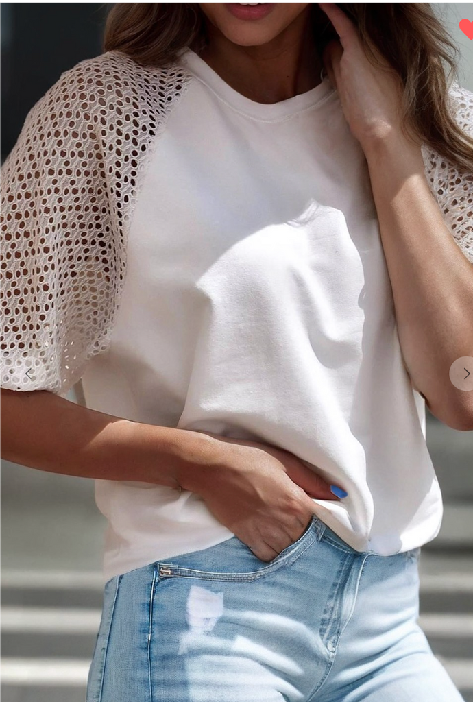 Elevate your everyday look with this contrast lace sleeve tee!