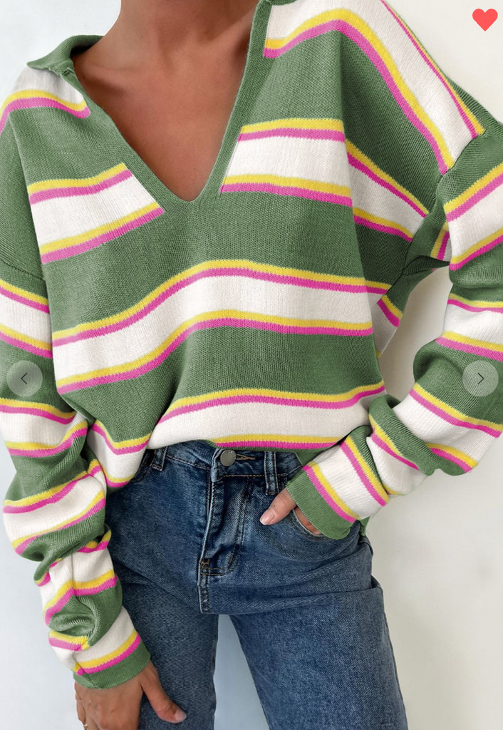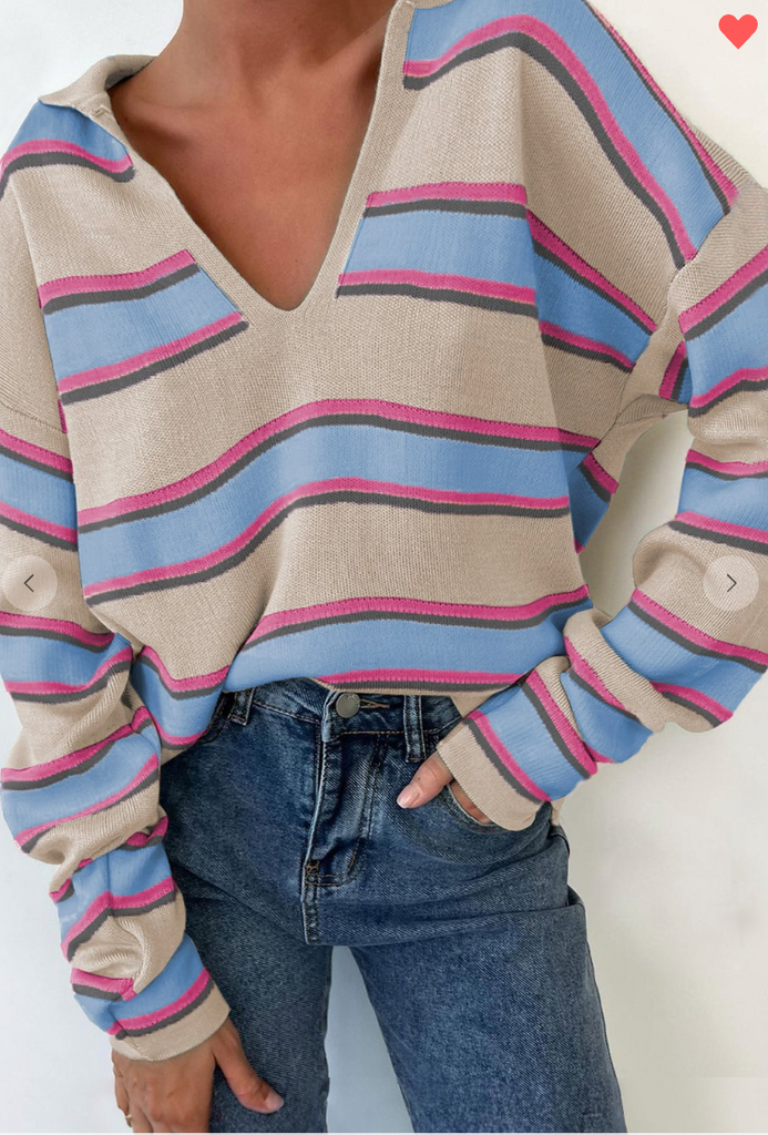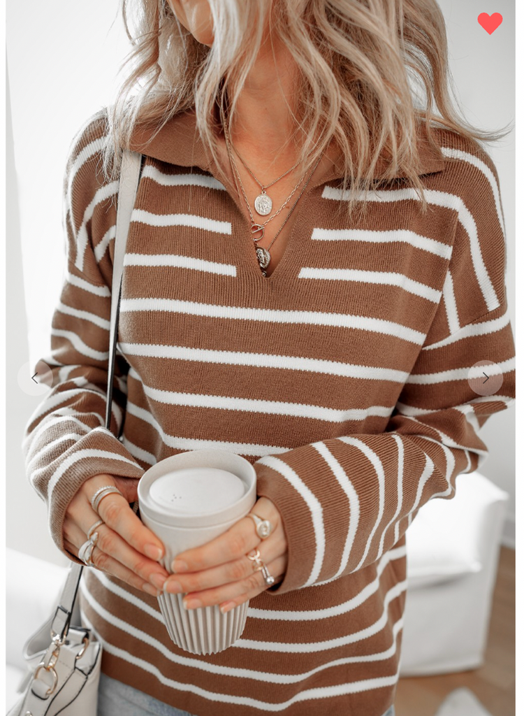 This one is so cute! Love the V neck and Collar and open bottom. This one is such a great fit and you can put it on with jeans or leather leggings or pants. The colors are really cute and trending too